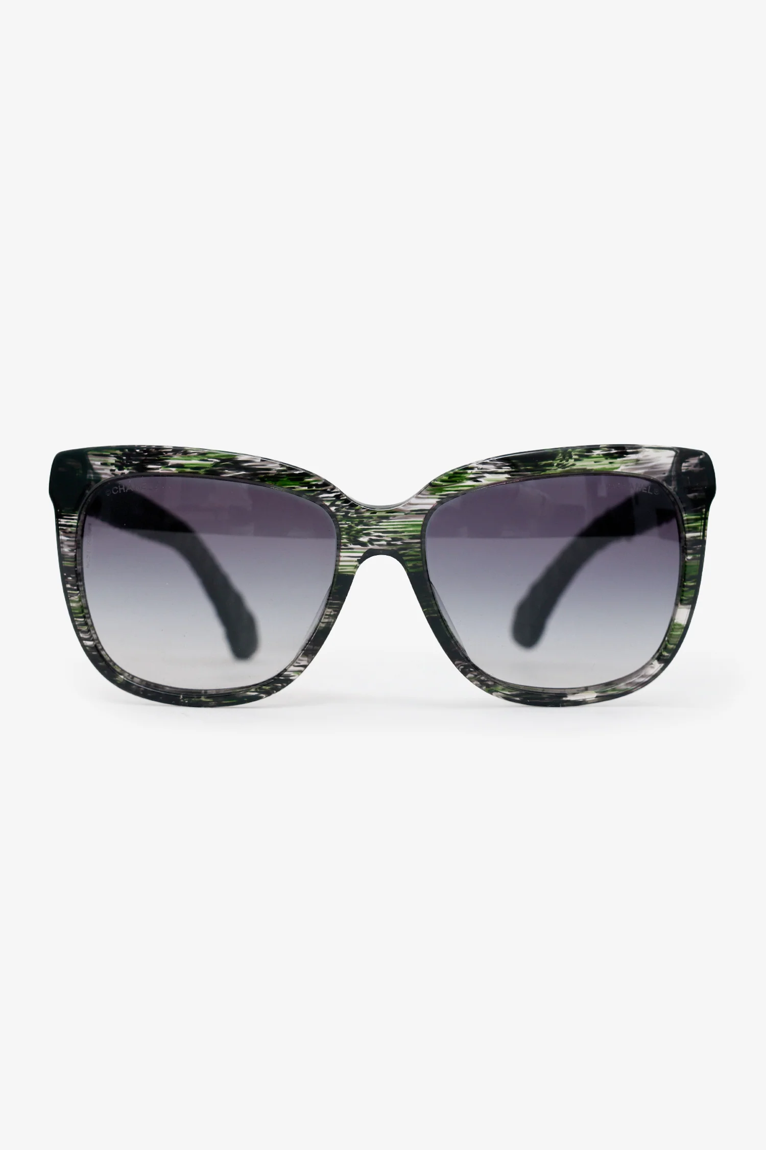 Pre-Loved Chanel™ Green/Black Frame Printed Denim CC Square Sunglasses
