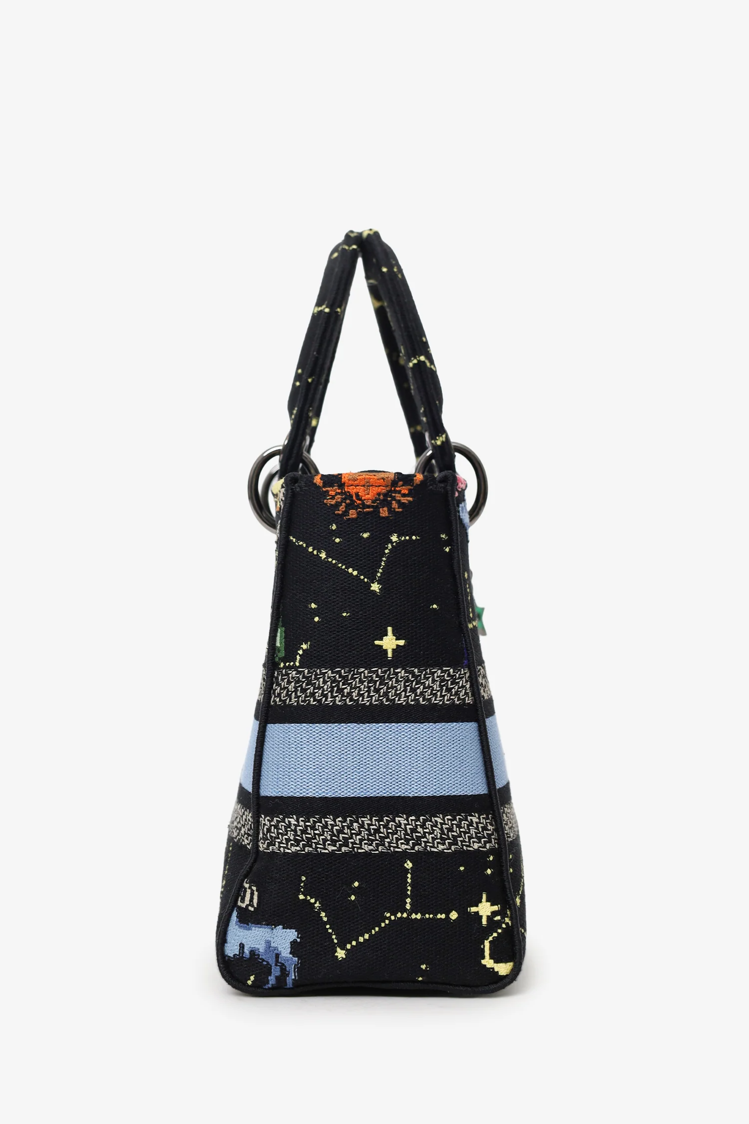 Christian Dior 2022 Black Canvas Pixel Zodiac Embroidered Medium Lady D-Lite With Strap