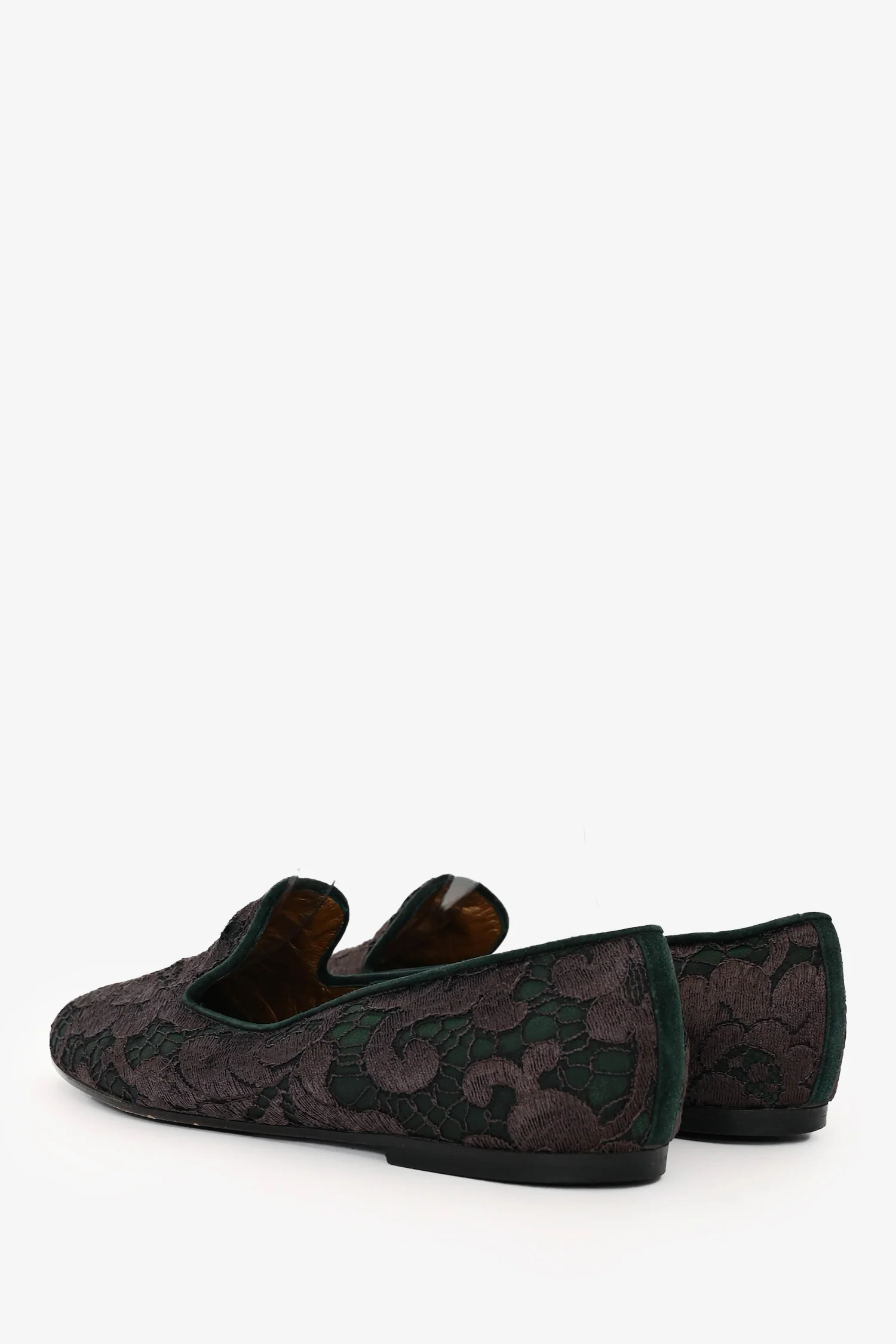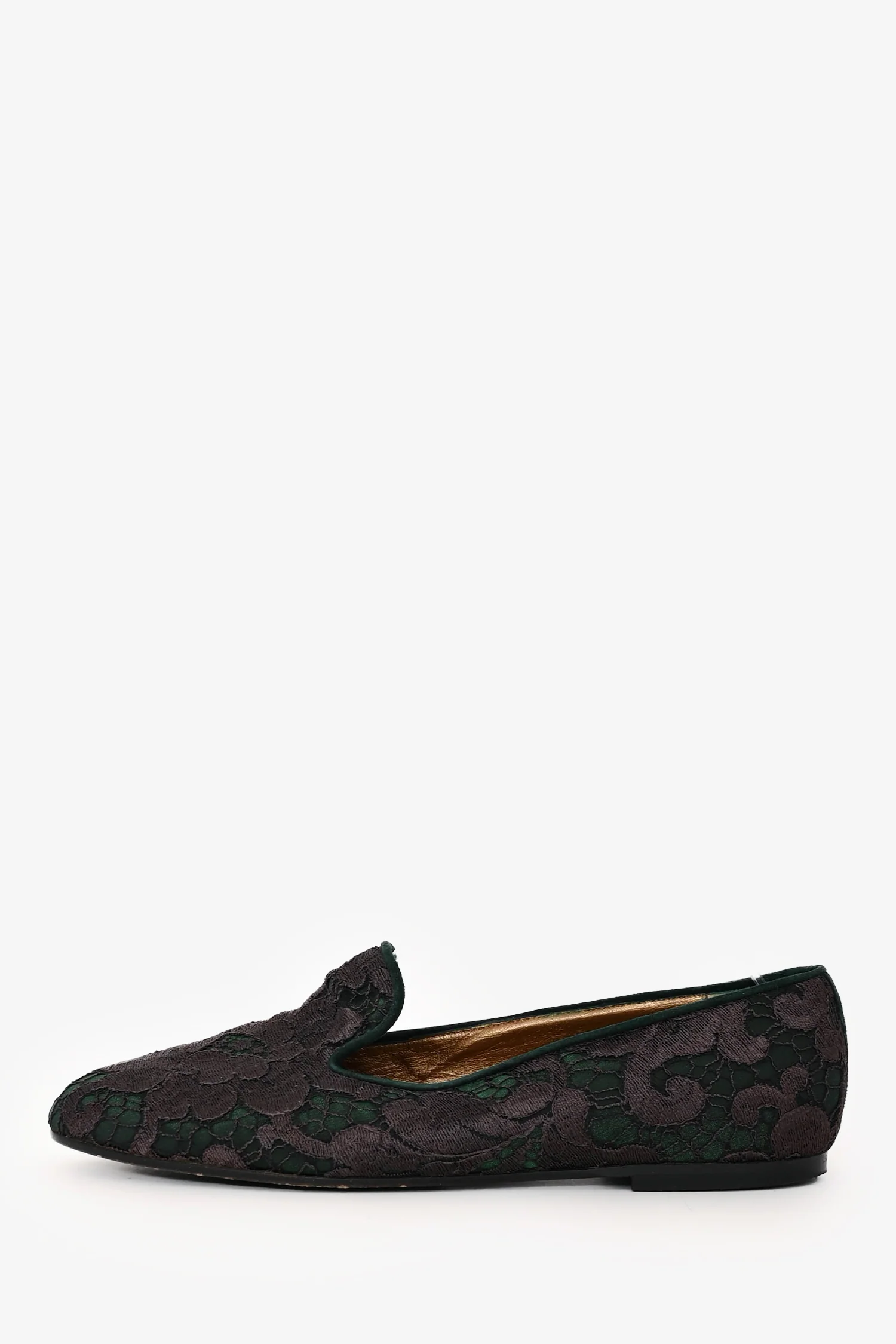 Refresh availabilityDiego Della Valle Green/Grey Lace Flats. Slip-on. Almond toe. Metallic interior. Tonal stitching.
