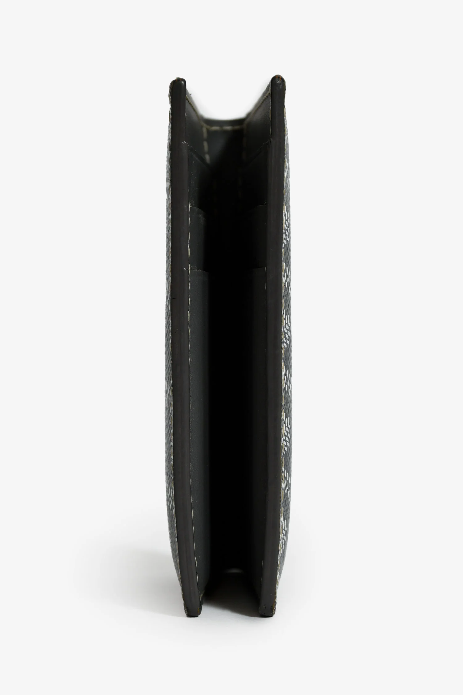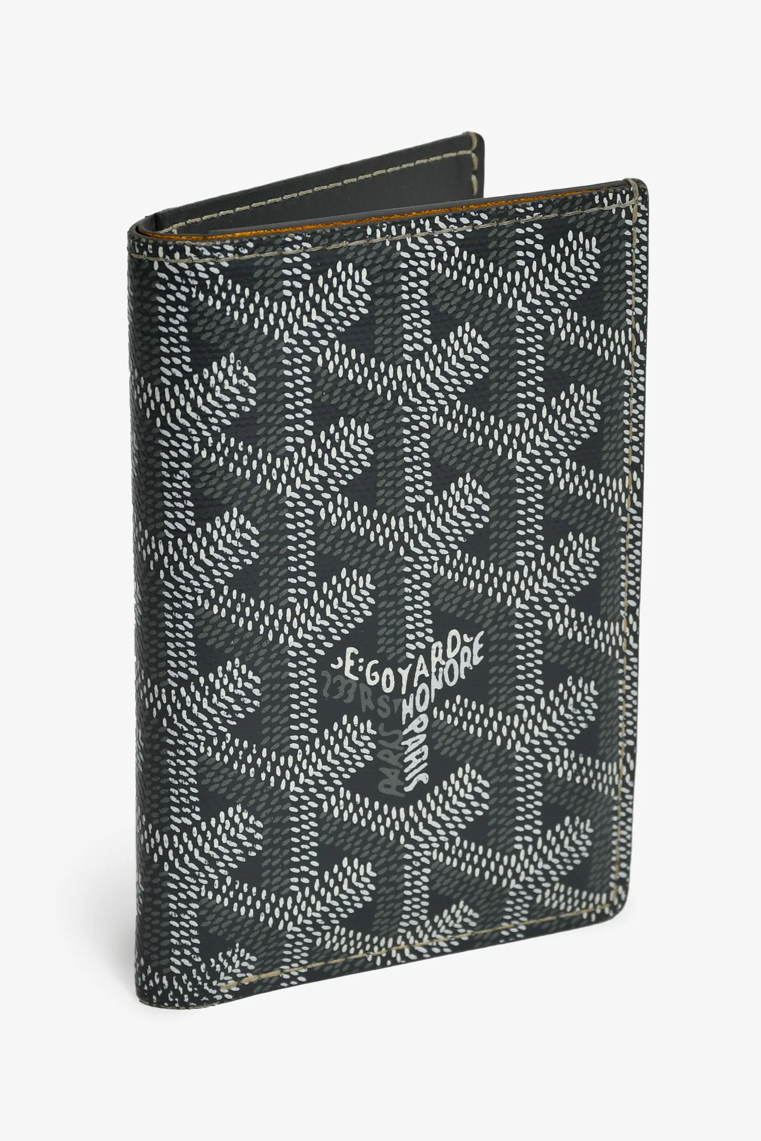 Goyard Grey Goyardine Leather Saint-Marc Card Wallet. Bi-fold opening. 8 interior card slots. Tonal stitching.
