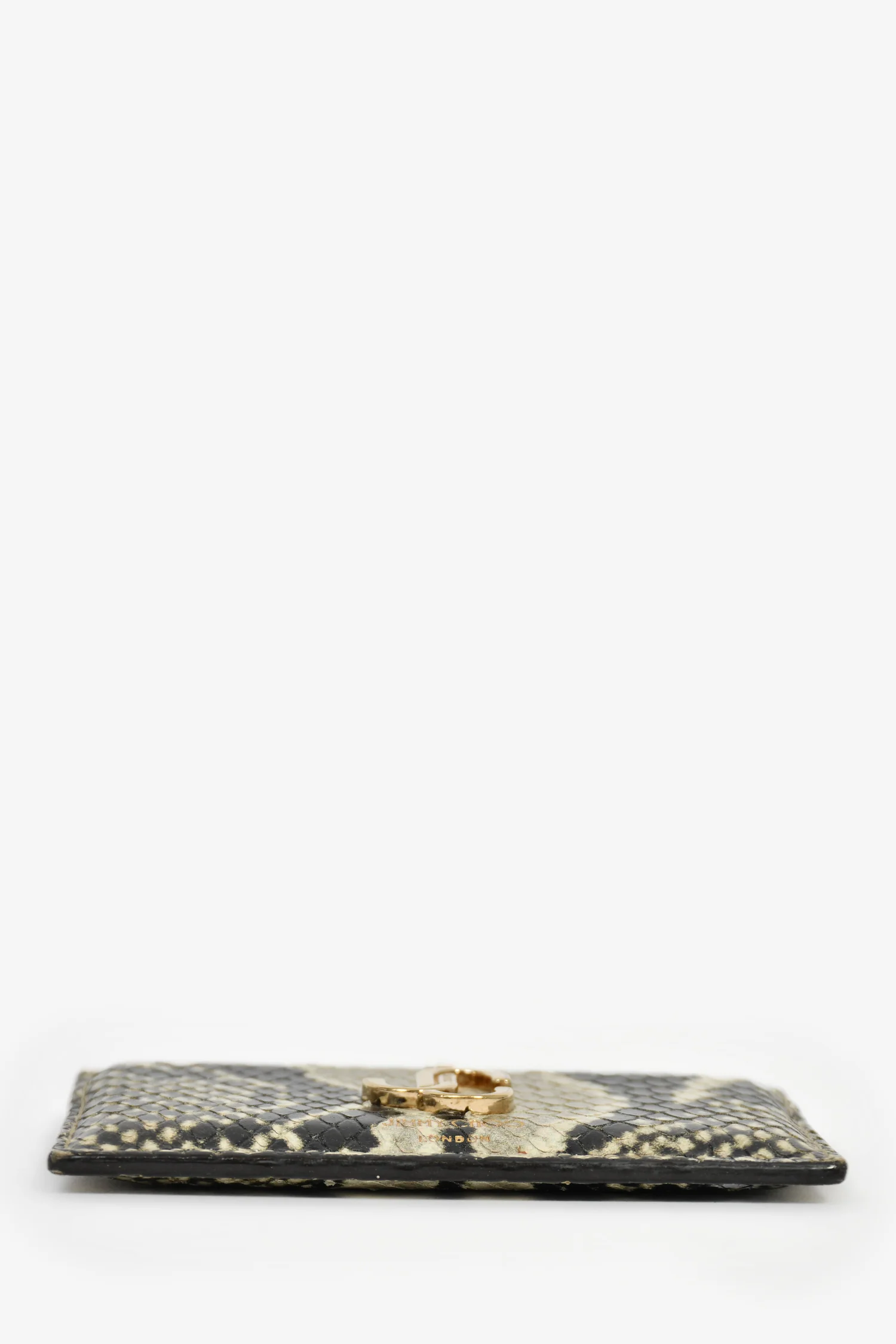 Jimmy Choo Grey/Black Snake Printed Card Holder. 3 card slots. Gold-tone hardware. Contrast stitching.